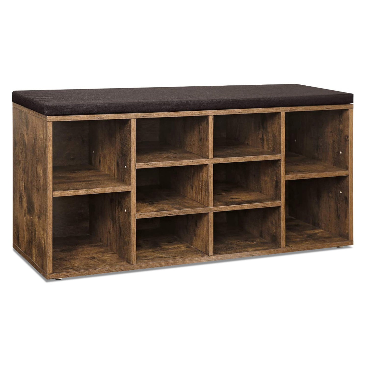 10 cipőtároló pad, cipőpad, cipőtartó párnával, rusztikus barna